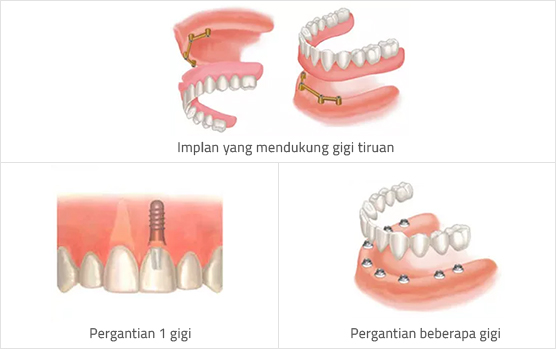Implan gigi digunakan sebagai perawatan dalam mengambil alih gigi yang hilang baik gigi hilang sebagian( parsial) ataupun gigi hilang sepenuhnya. Prosedur perawatan gigi hilang ini mempunyai tingkatan keberhasilan yang lumayan besar dibanding dengan gigi tiruan konvensional, sebab dental implant mempunyai tingkatan keawetan yang lumayan baik, dan dapat memelihara jaringan pendukung gigi di sekitarnya.